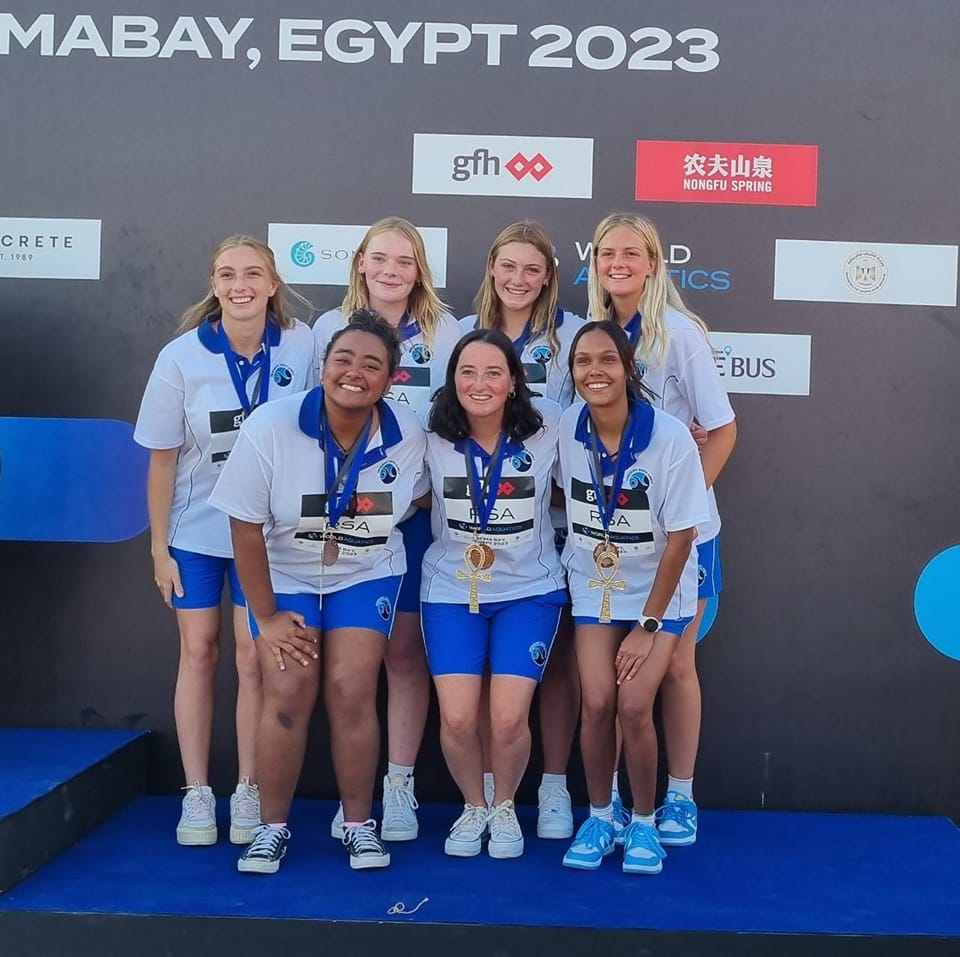 The team of women who represented South Africa in Egypt at the World Aquatics Water Polo Qualification Tournament for the World Beach Games will be arriving back in the country tomorrow, 17 May 2023. The team secured a bronze medal at the tournament and with that, qualified to compete at the World Beach Games in Bali this August.